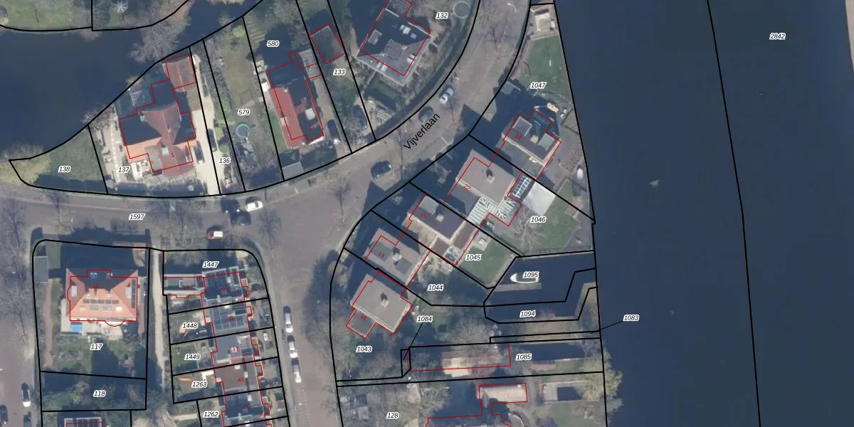 Vijverlaan 20 is gelegen op kadastraal perceel HLM02R1045. Deze kadastrale aanduiding is uniek en wordt gebruikt door het Kadaster om eigendomsrechten en andere zakelijke rechten vast te leggen. Het perceel maakt onderdeel uit van de kadastrale gemeente Haarlem.