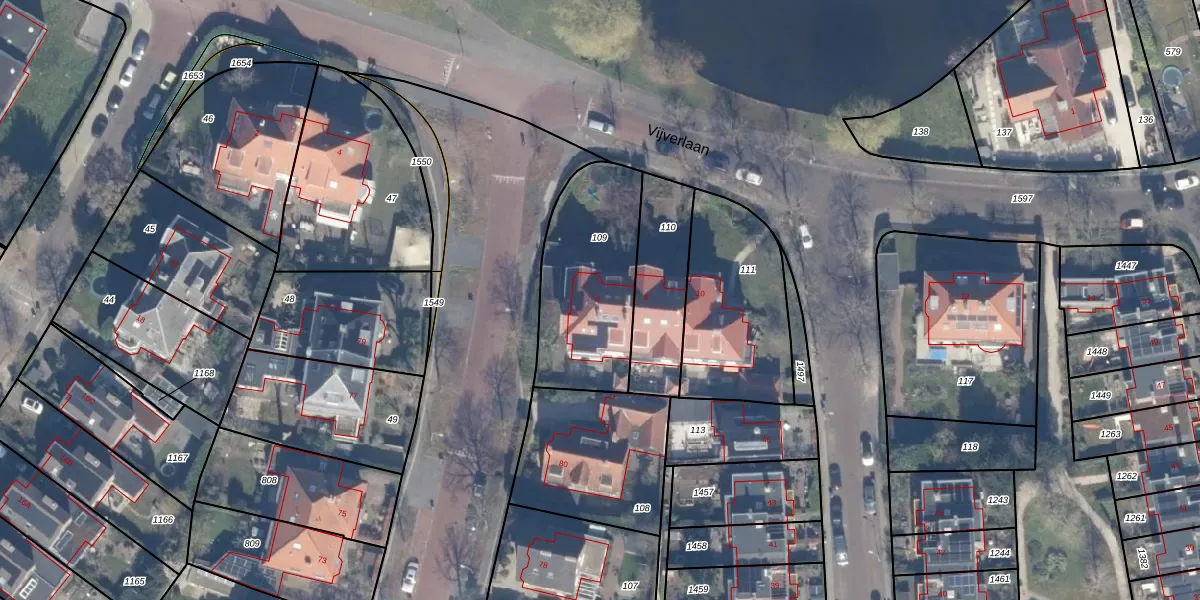 Het perceel waarop Vijverlaan 6 staat heeft een oppervlakte van 562 m². Dit is een groot perceel. De perceeloppervlakte wordt geregistreerd door het Kadaster. Gedetailleerde informatie over de maten van dit perceel kunt u vinden in het rapport Kadastrale kaart met maatvoering van Vijverlaan 6.