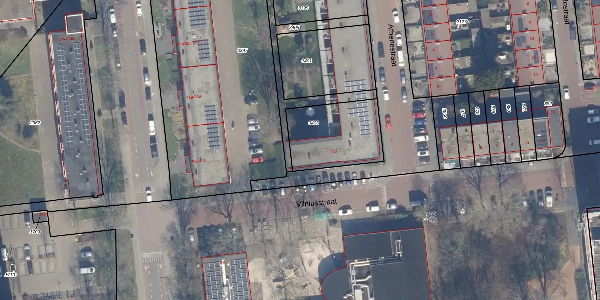 Vilniusstraat 17 is gelegen op kadastraal perceel HLM02Y3403. Deze kadastrale aanduiding is uniek en wordt gebruikt door het Kadaster om eigendomsrechten en andere zakelijke rechten vast te leggen. Het perceel maakt onderdeel uit van de kadastrale gemeente Haarlem.