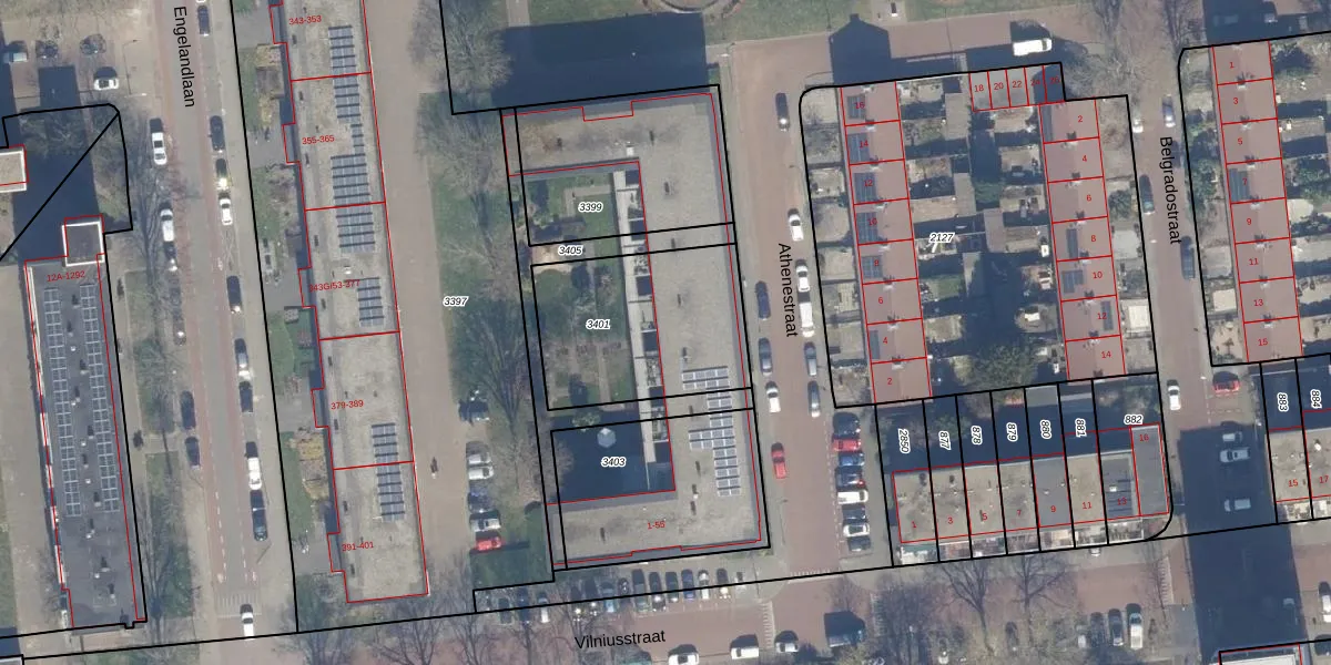 Vilniusstraat 45 is gelegen op kadastraal perceel HLM02Y3401. Deze kadastrale aanduiding is uniek en wordt gebruikt door het Kadaster om eigendomsrechten en andere zakelijke rechten vast te leggen. Het perceel maakt onderdeel uit van de kadastrale gemeente Haarlem.