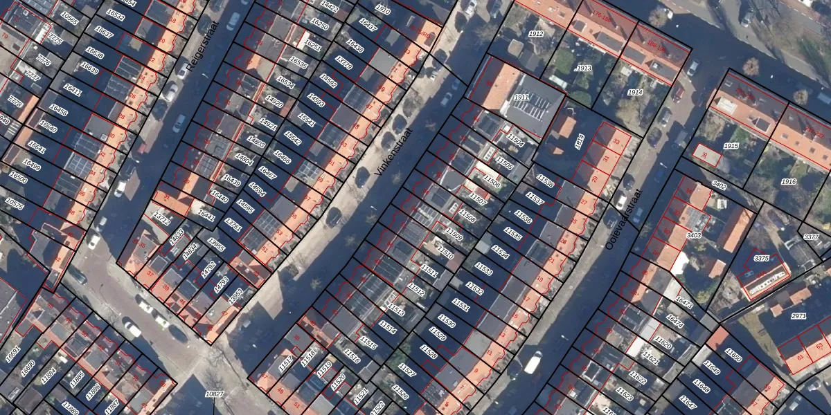 Het perceel waarop Vinkenstraat 54 staat heeft een oppervlakte van 118 m². Dit is een middelgroot perceel. De perceeloppervlakte wordt geregistreerd door het Kadaster. Gedetailleerde informatie over de maten van dit perceel kunt u vinden in het rapport Kadastrale kaart met maatvoering van Vinkenstraat 54.