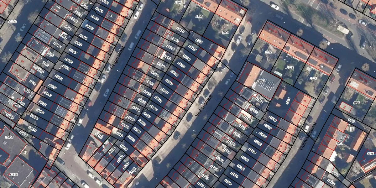 Het perceel waarop Vinkenstraat 65 staat heeft een oppervlakte van 109 m². Dit is een middelgroot perceel. De perceeloppervlakte wordt geregistreerd door het Kadaster. Gedetailleerde informatie over de maten van dit perceel kunt u vinden in het rapport Kadastrale kaart met maatvoering van Vinkenstraat 65.