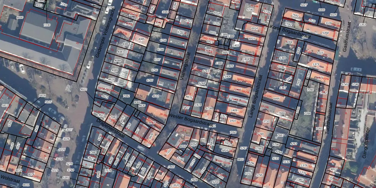 Het perceel waarop Vlamingstraat 23 staat heeft een oppervlakte van 44 m². Dit is een klein perceel. De perceeloppervlakte wordt geregistreerd door het Kadaster. Gedetailleerde informatie over de maten van dit perceel kunt u vinden in het rapport Kadastrale kaart met maatvoering van Vlamingstraat 23.