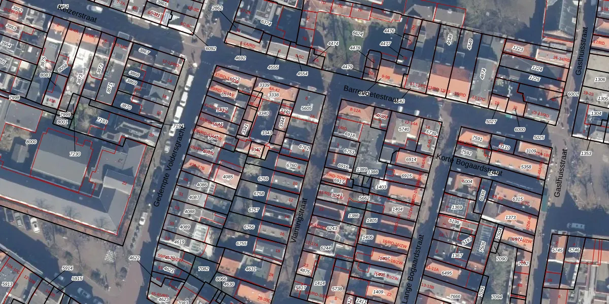 Het perceel waarop Vlamingstraat 6 staat heeft een oppervlakte van 57 m². Dit is een klein perceel. De perceeloppervlakte wordt geregistreerd door het Kadaster. Gedetailleerde informatie over de maten van dit perceel kunt u vinden in het rapport Kadastrale kaart met maatvoering van Vlamingstraat 6.
