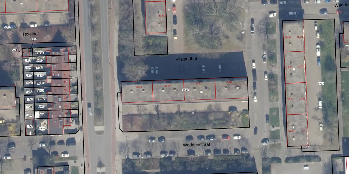 Het perceel waarop Vlielandhof 28 staat heeft een oppervlakte van 2117 m². Dit is een zeer groot perceel. De perceeloppervlakte wordt geregistreerd door het Kadaster. Gedetailleerde informatie over de maten van dit perceel kunt u vinden in het rapport Kadastrale kaart met maatvoering van Vlielandhof 28.