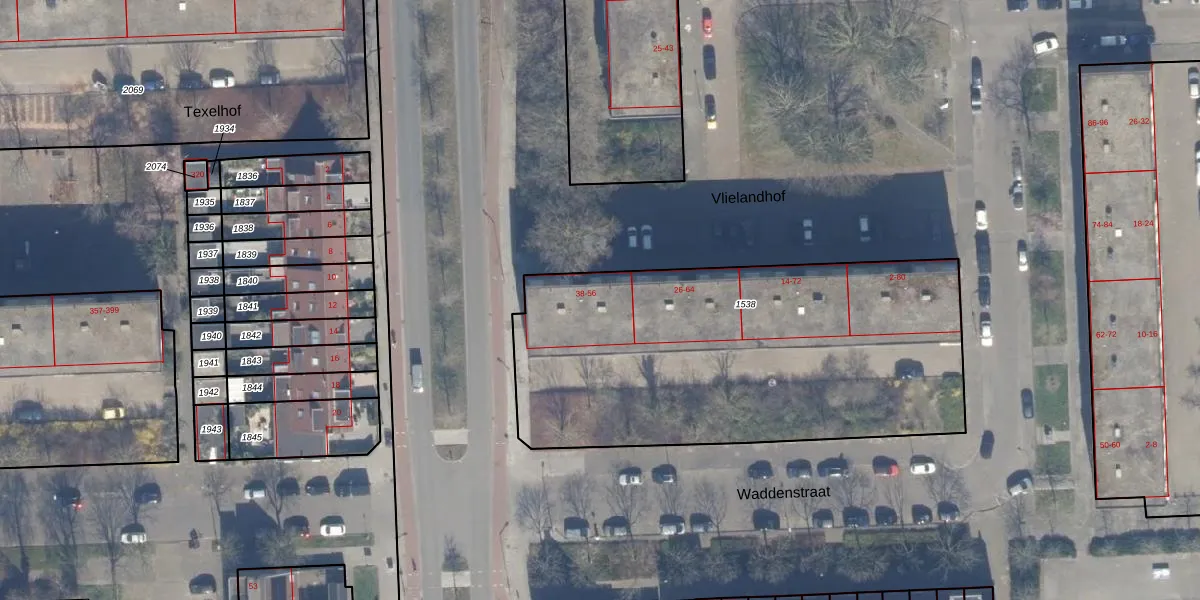 Het perceel waarop Vlielandhof 40 staat heeft een oppervlakte van 2117 m². Dit is een zeer groot perceel. De perceeloppervlakte wordt geregistreerd door het Kadaster. Gedetailleerde informatie over de maten van dit perceel kunt u vinden in het rapport Kadastrale kaart met maatvoering van Vlielandhof 40.