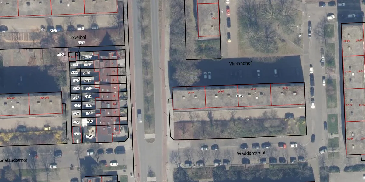 Het perceel waarop Vlielandhof 44 staat heeft een oppervlakte van 2117 m². Dit is een zeer groot perceel. De perceeloppervlakte wordt geregistreerd door het Kadaster. Gedetailleerde informatie over de maten van dit perceel kunt u vinden in het rapport Kadastrale kaart met maatvoering van Vlielandhof 44.