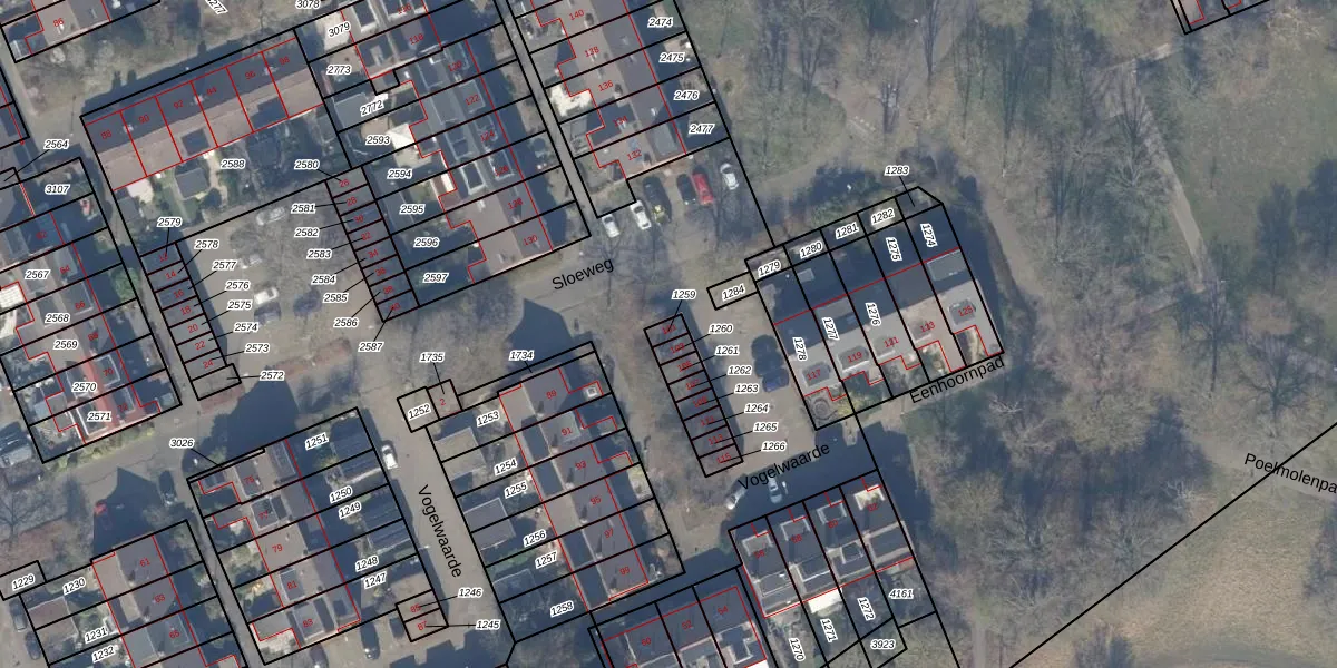 Gebruik de zoekbalk of klik op een perceel voor informatie over de adressen binnen dit perceel.
