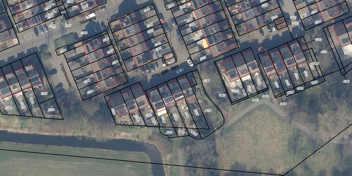 Het perceel waarop Vogelwaarde 12 staat heeft een oppervlakte van 181 m². Dit is een middelgroot perceel. De perceeloppervlakte wordt geregistreerd door het Kadaster. Gedetailleerde informatie over de maten van dit perceel kunt u vinden in het rapport Kadastrale kaart met maatvoering van Vogelwaarde 12.