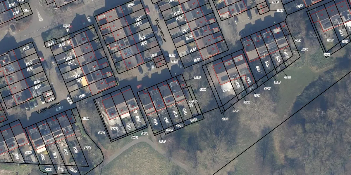 Het perceel waarop Vogelwaarde 30 staat heeft een oppervlakte van 156 m². Dit is een middelgroot perceel. De perceeloppervlakte wordt geregistreerd door het Kadaster. Gedetailleerde informatie over de maten van dit perceel kunt u vinden in het rapport Kadastrale kaart met maatvoering van Vogelwaarde 30.