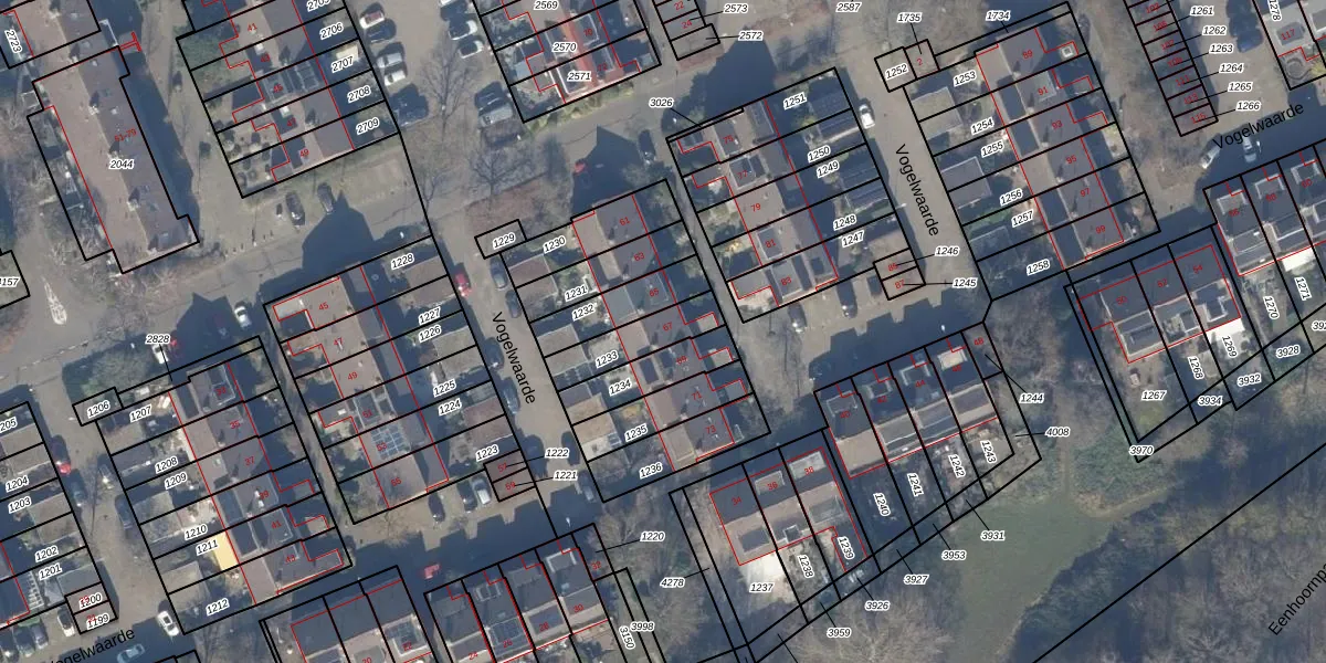 Het perceel waarop Vogelwaarde 67 staat heeft een oppervlakte van 158 m². Dit is een middelgroot perceel. De perceeloppervlakte wordt geregistreerd door het Kadaster. Gedetailleerde informatie over de maten van dit perceel kunt u vinden in het rapport Kadastrale kaart met maatvoering van Vogelwaarde 67.