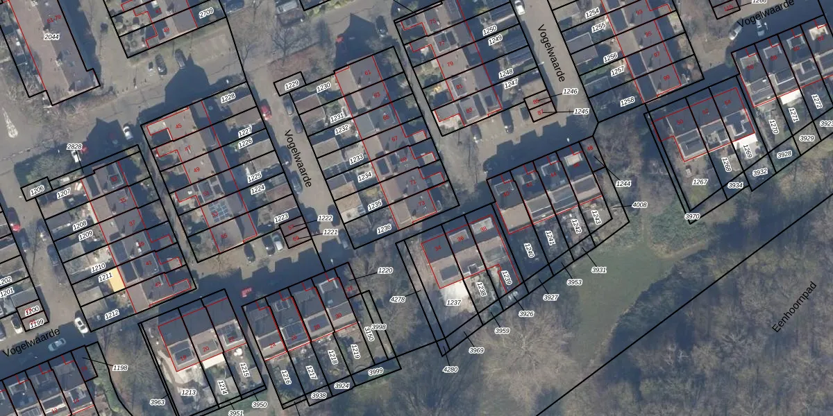 Gebruik de zoekbalk of klik op een perceel voor informatie over de adressen binnen dit perceel.