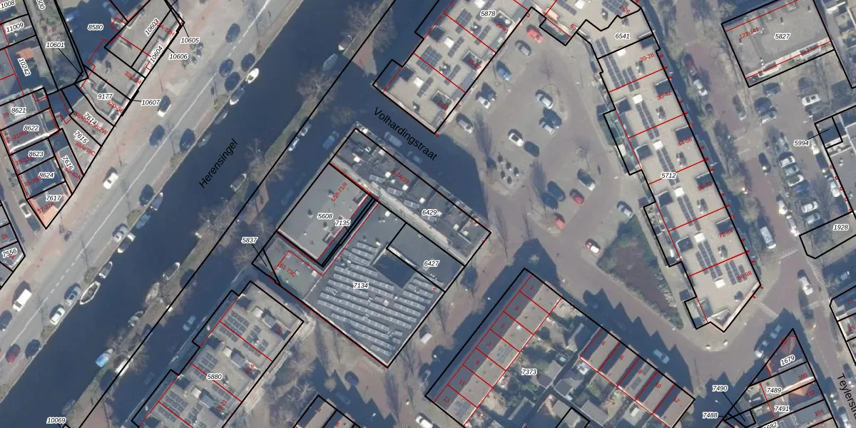 Het adres ligt op het perceel HLM01-E-6429, dat zich in de kadastrale gemeente Haarlem bevindt. Het perceel is met 419 m² relatief groot. Het gemiddelde ligt in de kadastrale gemeente Haarlem op 328,33 m². Het grootste perceel in de kadastrale gemeente is 13,9 ha. Het kleinste perceel heeft een oppervlakte van 0 m². Op het perceel zijn 33 adressen aanwezig. In de Basisregistratie Kadaster (BRK) werden de grenzen van het perceel geregistreerd op 16-02-2016.