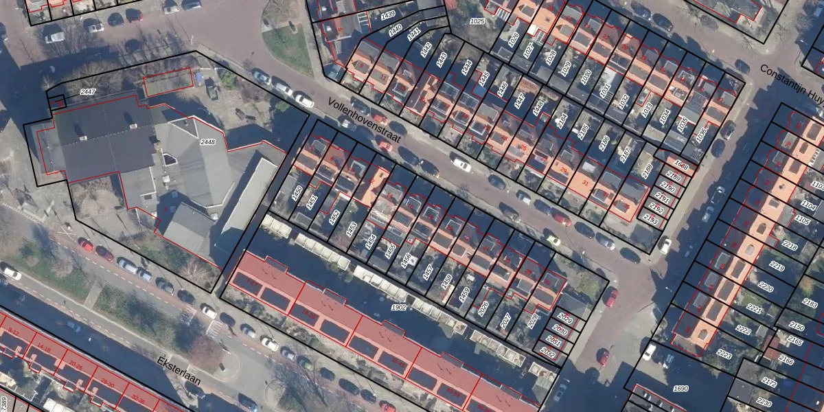 Gebruik de zoekbalk of klik op een perceel voor informatie over de adressen binnen dit perceel.