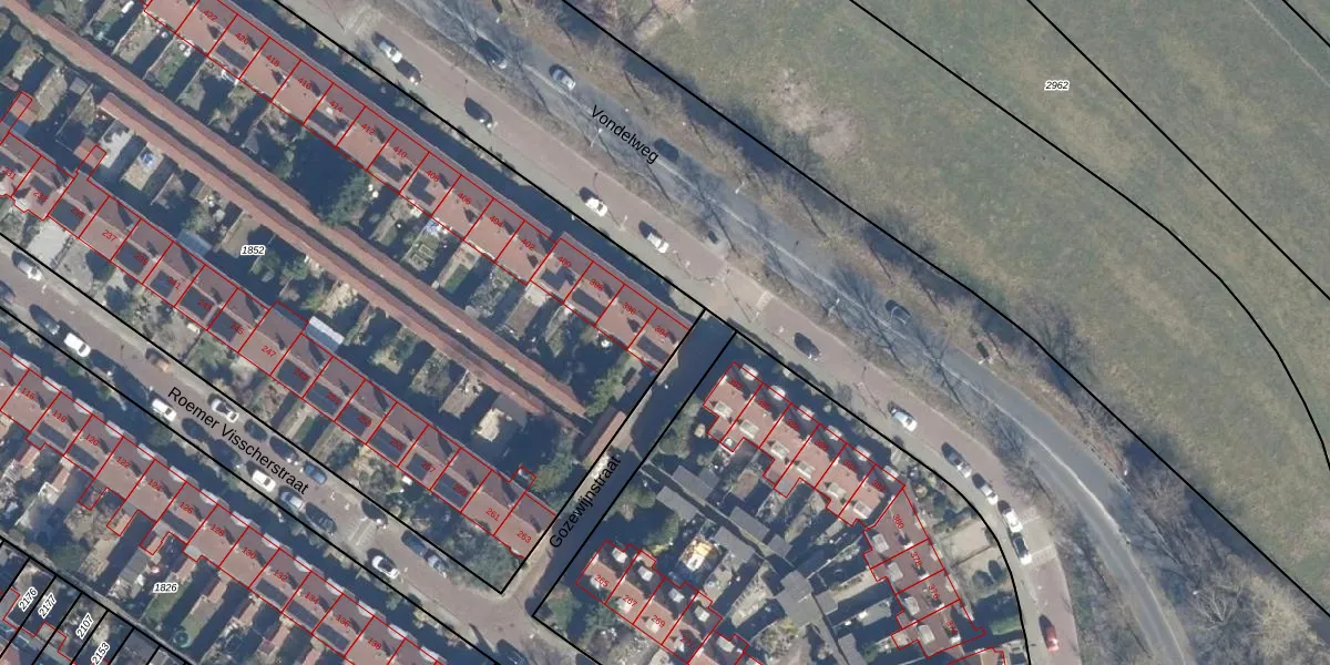 Het perceel waarop Vondelweg 394 staat heeft een oppervlakte van 6791 m². Dit is een zeer groot perceel. De perceeloppervlakte wordt geregistreerd door het Kadaster. Gedetailleerde informatie over de maten van dit perceel kunt u vinden in het rapport Kadastrale kaart met maatvoering van Vondelweg 394.