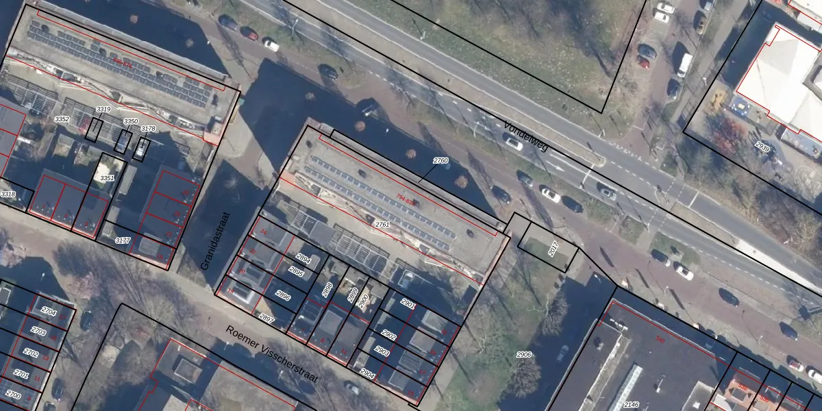 Het perceel waarop Vondelweg 814 staat heeft een oppervlakte van 1402 m². Dit is een zeer groot perceel. De perceeloppervlakte wordt geregistreerd door het Kadaster. Gedetailleerde informatie over de maten van dit perceel kunt u vinden in het rapport Kadastrale kaart met maatvoering van Vondelweg 814.