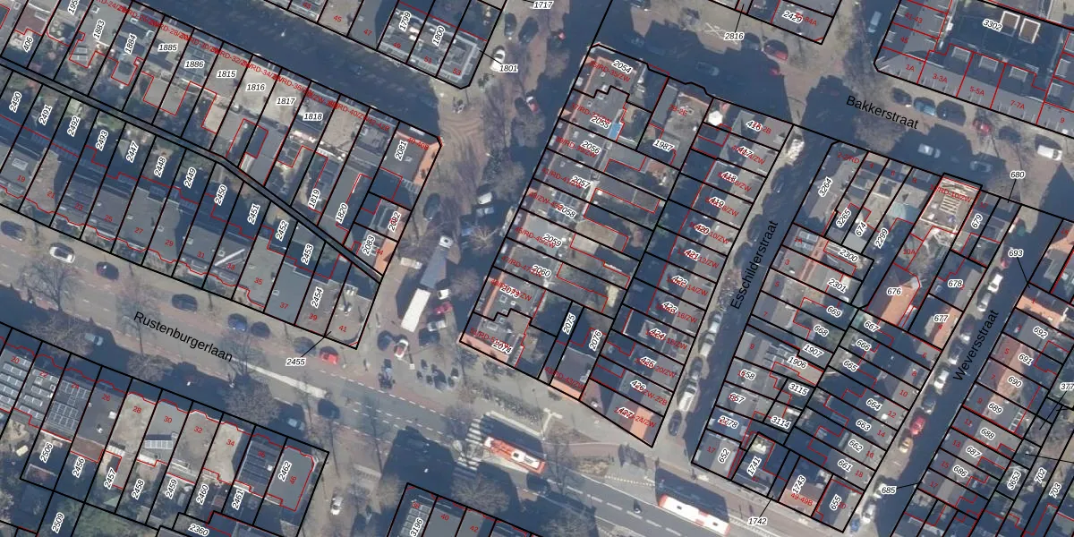 Het perceel waarop het adres ligt is HLM01-K-2060. De afkorting 'HLM01' staat voor kadastrale gemeente Haarlem. Het perceel is kleiner dan gemiddeld in Haarlem. Het perceel is 149 m² groot, terwijl het gemiddelde ligt op 328,3 m². Het grootste perceel in de kadastrale gemeente is 13,9 ha. Het kleinste perceel heeft een oppervlakte van 0 m². Er zijn 2 adressen aanwezig op het perceel. In de Basisregistratie Kadaster (BRK) werden de grenzen van het perceel geregistreerd op 28-11-1997.