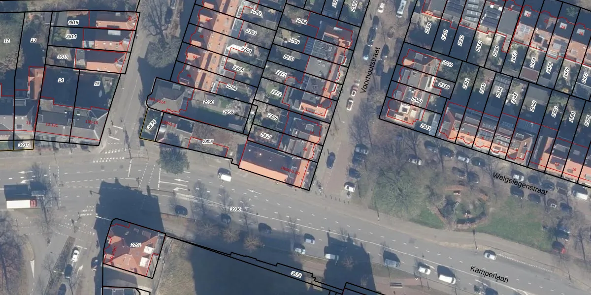 Gebruik de zoekbalk of klik op een perceel voor informatie over de adressen binnen dit perceel.