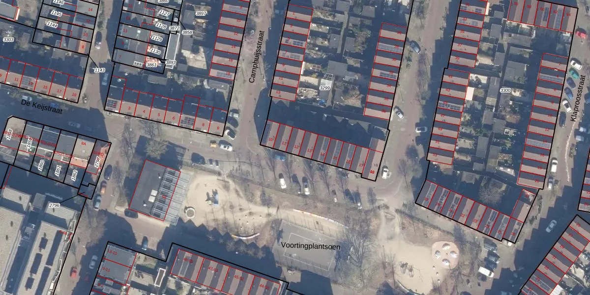 Het perceel waarop Voortingplantsoen 12 staat heeft een oppervlakte van 2885 m². Dit is een zeer groot perceel. De perceeloppervlakte wordt geregistreerd door het Kadaster. Gedetailleerde informatie over de maten van dit perceel kunt u vinden in het rapport Kadastrale kaart met maatvoering van Voortingplantsoen 12.