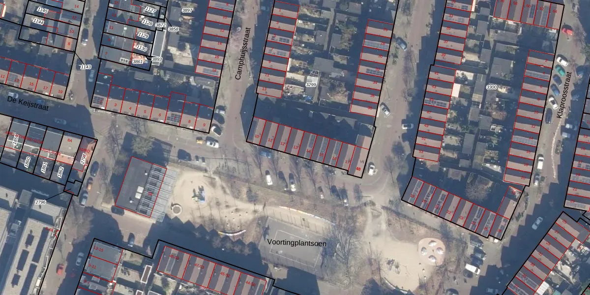 Het perceel waarop Voortingplantsoen 13 staat heeft een oppervlakte van 2885 m². Dit is een zeer groot perceel. De perceeloppervlakte wordt geregistreerd door het Kadaster. Gedetailleerde informatie over de maten van dit perceel kunt u vinden in het rapport Kadastrale kaart met maatvoering van Voortingplantsoen 13.
