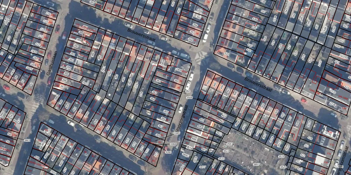 Gebruik de zoekbalk of klik op een perceel voor informatie over de adressen binnen dit perceel.