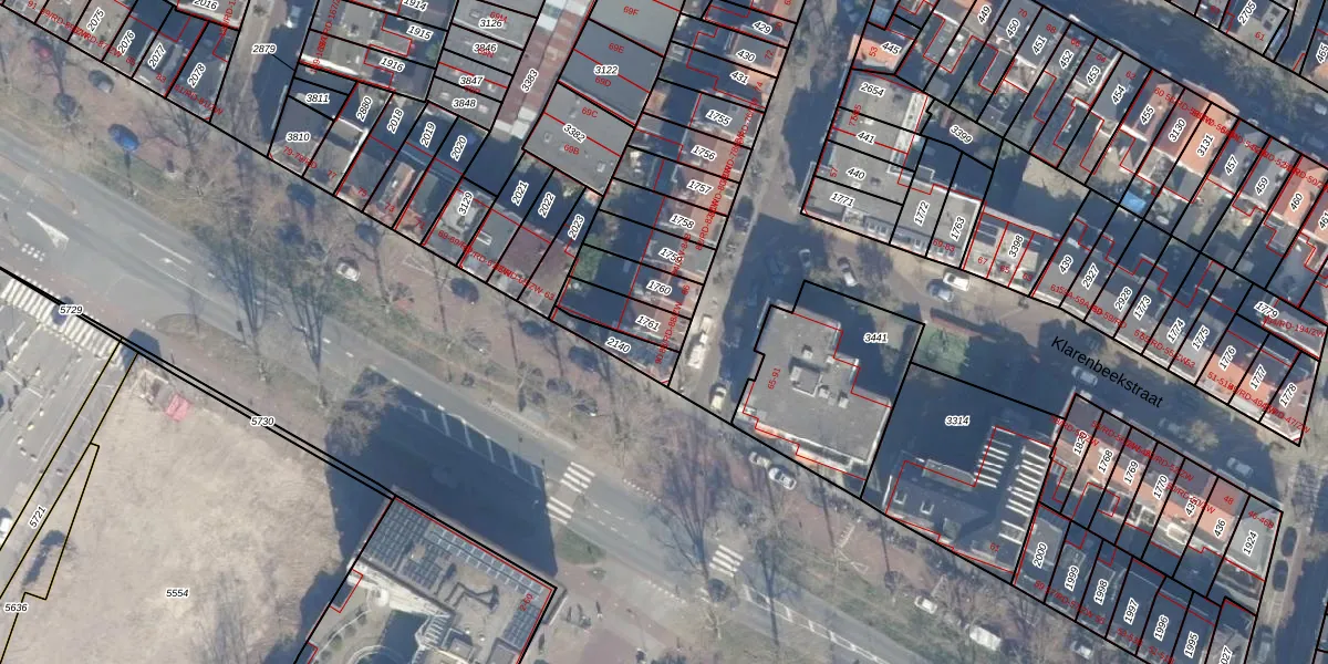 Het perceel waarop het adres ligt is HLM01-H-1761. De afkorting 'HLM01' staat voor kadastrale gemeente Haarlem. Het perceel is kleiner dan gemiddeld in Haarlem. Het perceel is 108 m² groot, terwijl het gemiddelde ligt op 328,37 m². Het grootste perceel in de kadastrale gemeente is 13,9 ha. Het kleinste perceel heeft een oppervlakte van 0 m². Op het perceel liggen in totaal 2 adressen. De huidige grenzen van het perceel zijn digitaal in de Basisregistratie Kadaster (BRK) geregistreerd op 12-10-2001.