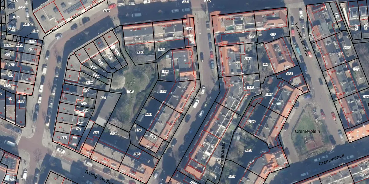 Het perceel waarop het adres ligt is HLM02-P-1953. De afkorting 'HLM02' staat voor kadastrale gemeente Haarlem. Het perceel is kleiner dan gemiddeld in Haarlem. Het perceel is 341 m² groot, terwijl het gemiddelde ligt op 1125,45 m². Het grootste perceel in de kadastrale gemeente is 46,4 ha. Het kleinste perceel heeft een oppervlakte van 0 m². Op het perceel liggen in totaal 5 adressen. De huidige grenzen van het perceel zijn digitaal in de Basisregistratie Kadaster (BRK) geregistreerd op 18-09-2001.