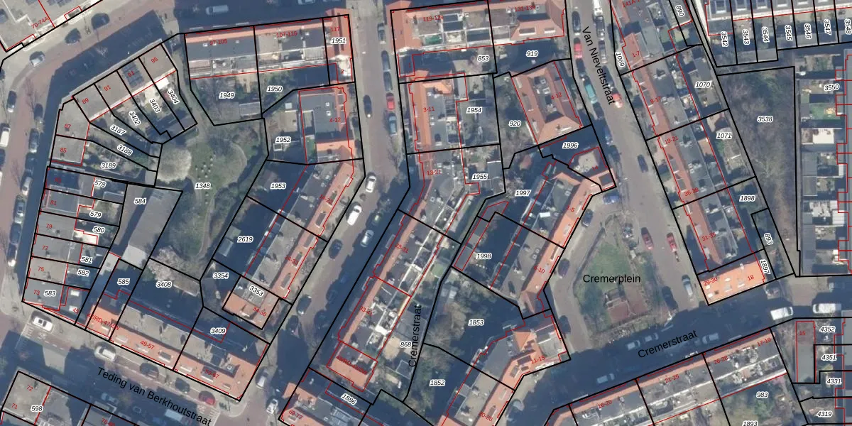 Het perceel waarop het adres ligt is HLM02-P-1955. De afkorting 'HLM02' staat voor kadastrale gemeente Haarlem. De gemiddelde perceelgrootte in Haarlem is 1125,79 m². Dit perceel is kleiner: de perceeloppervlakte bedraagt 385 m². Het kleinste perceel in de kadastrale gemeente is 0 m² groot. De grootste perceeloppervlakte is 46,4 ha. Op het perceel liggen in totaal 5 adressen. De laatste wijziging in het de Basisregistratie Kadaster (BRK) was op 18-09-2001.