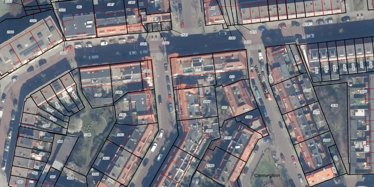 Het adres is gelegen op perceel 1954 in de sectie P en de kadastrale gemeente Haarlem. De kadastrale aanduiding is aldus HLM02-P-1954. De gemiddelde perceelgrootte in Haarlem is 1123,97 m². Dit perceel is kleiner: de perceeloppervlakte bedraagt 374 m². Het grootste perceel in de kadastrale gemeente is 46,4 ha. Het kleinste perceel heeft een oppervlakte van 0 m². Op het perceel zijn 6 adressen aanwezig. De huidige grenzen van het perceel zijn digitaal in de Basisregistratie Kadaster (BRK) geregistreerd op 18-09-2001.