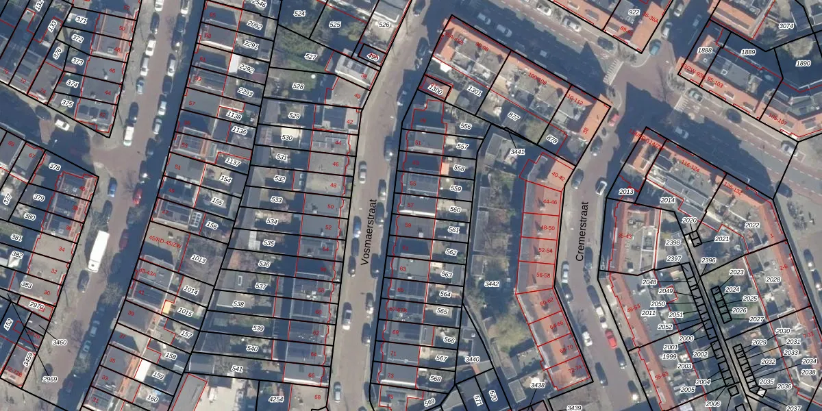 Het perceel waarop Vosmaerstraat 57 staat heeft een oppervlakte van 100 m². Dit is een middelgroot perceel. De perceeloppervlakte wordt geregistreerd door het Kadaster. Gedetailleerde informatie over de maten van dit perceel kunt u vinden in het rapport Kadastrale kaart met maatvoering van Vosmaerstraat 57.
