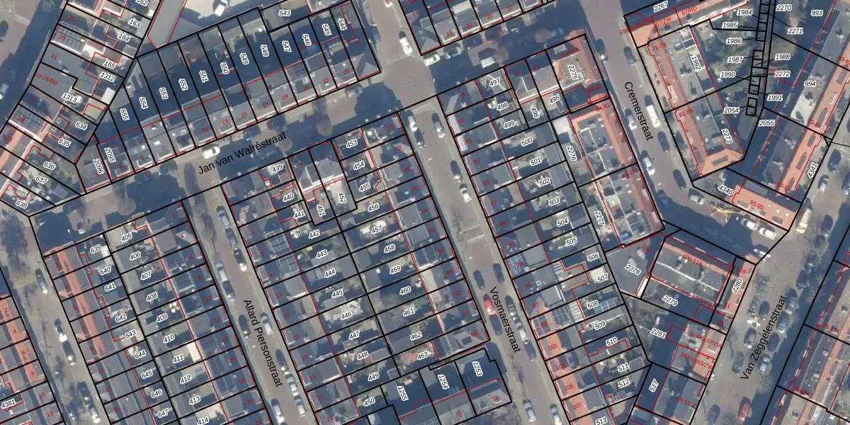 Vosmaerstraat 84 is gelegen op kadastraal perceel HLM02P457. Deze kadastrale aanduiding is uniek en wordt gebruikt door het Kadaster om eigendomsrechten en andere zakelijke rechten vast te leggen. Het perceel maakt onderdeel uit van de kadastrale gemeente Haarlem.