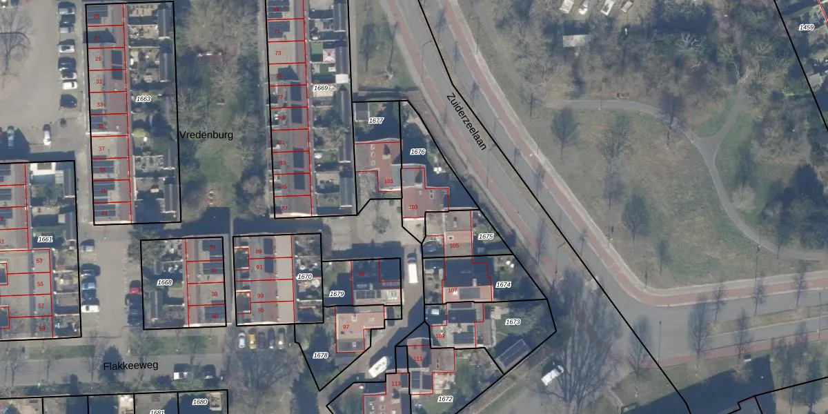 Het perceel waarop Vredenburg 103 staat heeft een oppervlakte van 304 m². Dit is een groot perceel. De perceeloppervlakte wordt geregistreerd door het Kadaster. Gedetailleerde informatie over de maten van dit perceel kunt u vinden in het rapport Kadastrale kaart met maatvoering van Vredenburg 103.