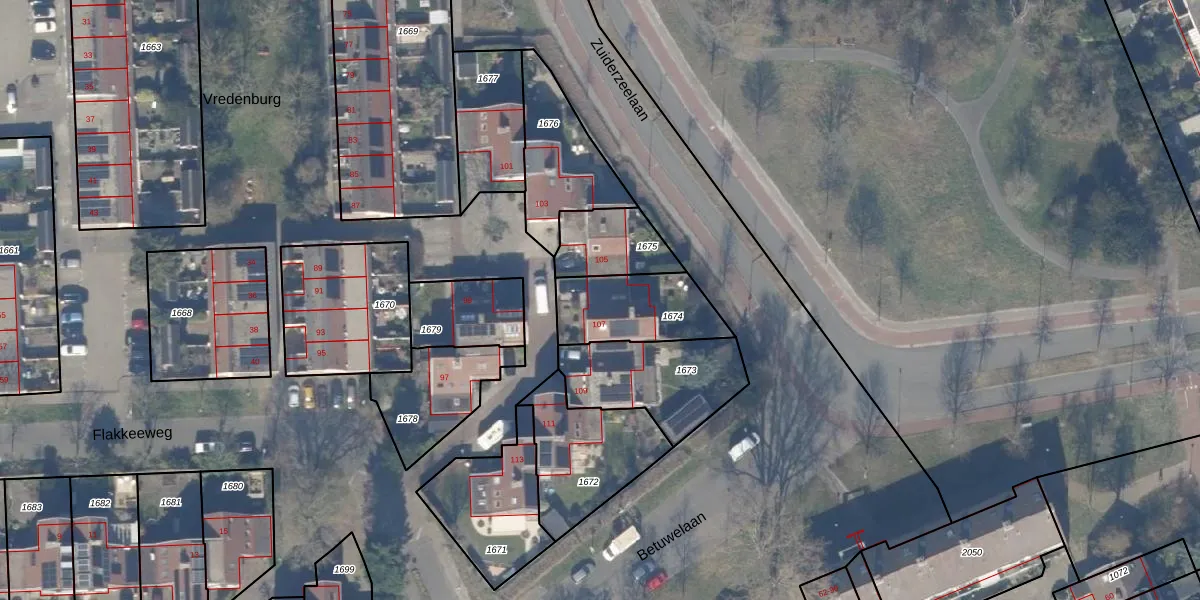 Gebruik de zoekbalk of klik op een perceel voor informatie over de adressen binnen dit perceel.