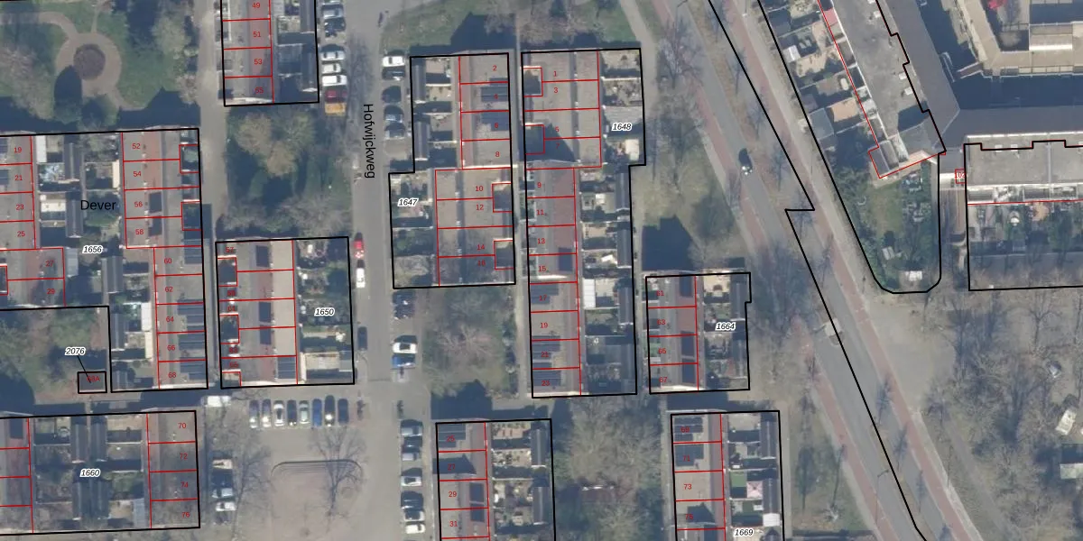 Het perceel waarop Vredenburg 15 staat heeft een oppervlakte van 1300 m². Dit is een zeer groot perceel. De perceeloppervlakte wordt geregistreerd door het Kadaster. Gedetailleerde informatie over de maten van dit perceel kunt u vinden in het rapport Kadastrale kaart met maatvoering van Vredenburg 15.