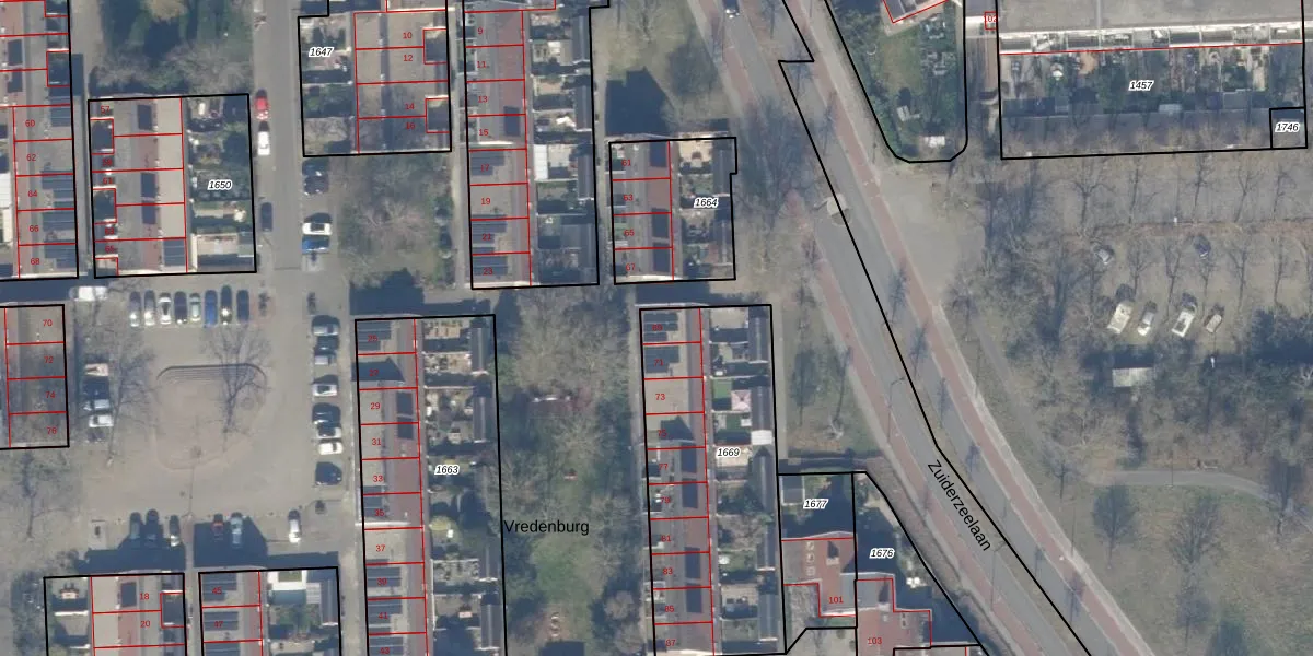 Het perceel waarop Vredenburg 69 staat heeft een oppervlakte van 1058 m². Dit is een zeer groot perceel. De perceeloppervlakte wordt geregistreerd door het Kadaster. Gedetailleerde informatie over de maten van dit perceel kunt u vinden in het rapport Kadastrale kaart met maatvoering van Vredenburg 69.