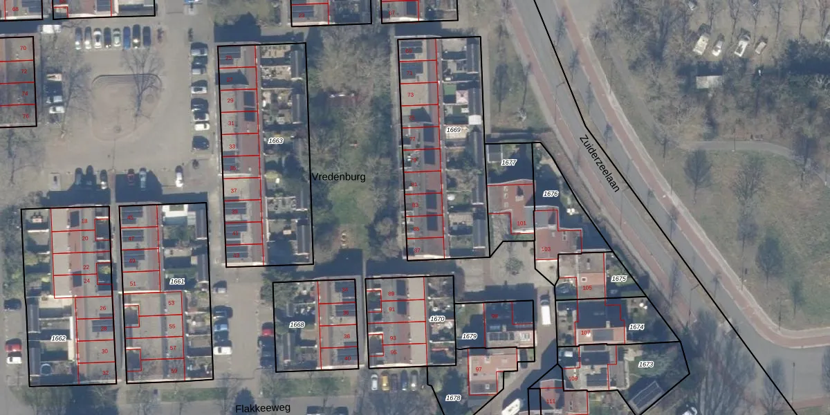 Het perceel waarop Vredenburg 83 staat heeft een oppervlakte van 1058 m². Dit is een zeer groot perceel. De perceeloppervlakte wordt geregistreerd door het Kadaster. Gedetailleerde informatie over de maten van dit perceel kunt u vinden in het rapport Kadastrale kaart met maatvoering van Vredenburg 83.