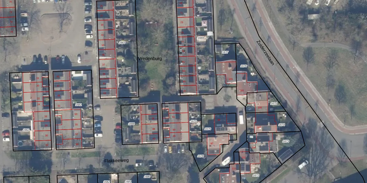 Het perceel waarop Vredenburg 87 staat heeft een oppervlakte van 1058 m². Dit is een zeer groot perceel. De perceeloppervlakte wordt geregistreerd door het Kadaster. Gedetailleerde informatie over de maten van dit perceel kunt u vinden in het rapport Kadastrale kaart met maatvoering van Vredenburg 87.