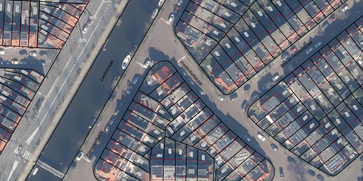 Gebruik de zoekbalk of klik op een perceel voor informatie over de adressen binnen dit perceel.