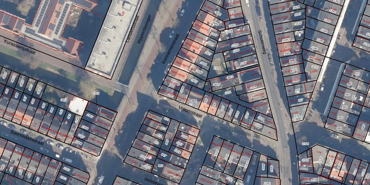 Het perceel waarop Vroomstraat 1-A-RD staat heeft een oppervlakte van 61 m². Dit is een klein perceel. De perceeloppervlakte wordt geregistreerd door het Kadaster. Gedetailleerde informatie over de maten van dit perceel kunt u vinden in het rapport Kadastrale kaart met maatvoering van Vroomstraat 1-A-RD.