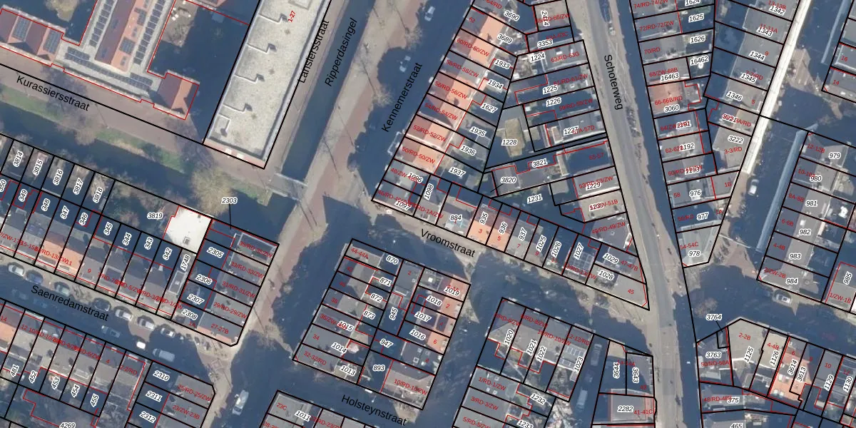 Het perceel waarop Vroomstraat 1-A-ZW staat heeft een oppervlakte van 61 m². Dit is een klein perceel. De perceeloppervlakte wordt geregistreerd door het Kadaster. Gedetailleerde informatie over de maten van dit perceel kunt u vinden in het rapport Kadastrale kaart met maatvoering van Vroomstraat 1-A-ZW.
