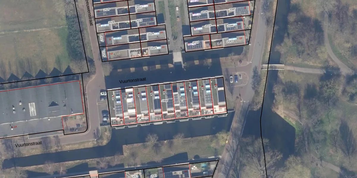 Het perceel waarop Vuurtonstraat 12 staat heeft een oppervlakte van 1341 m². Dit is een zeer groot perceel. De perceeloppervlakte wordt geregistreerd door het Kadaster. Gedetailleerde informatie over de maten van dit perceel kunt u vinden in het rapport Kadastrale kaart met maatvoering van Vuurtonstraat 12.