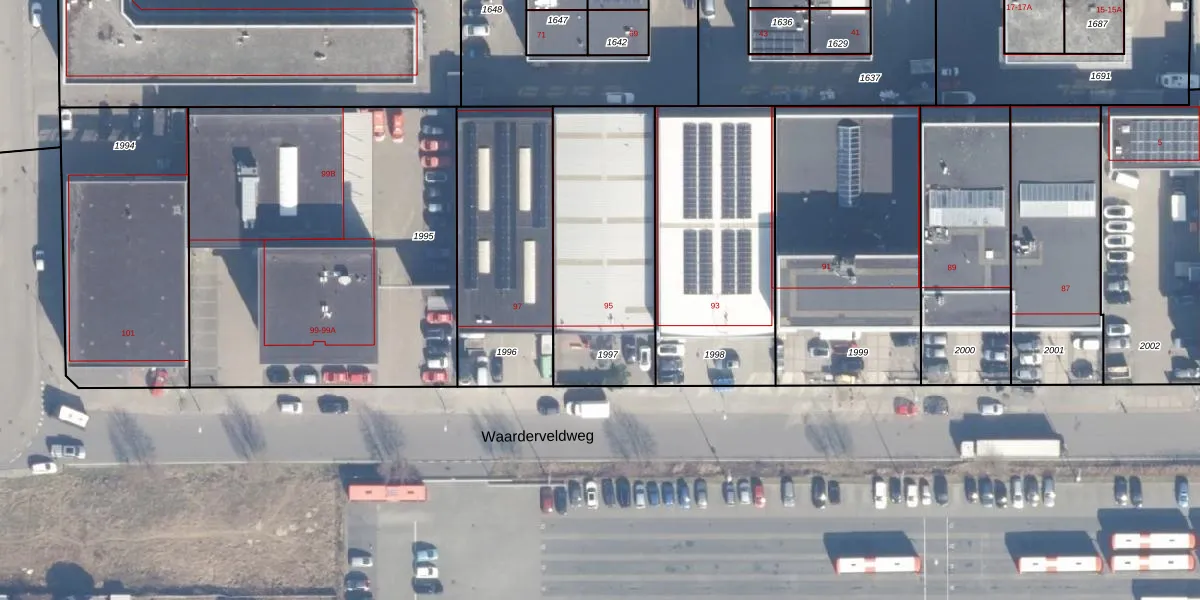 Waarderveldweg 95 is gelegen op kadastraal perceel HLM02N1997. Deze kadastrale aanduiding is uniek en wordt gebruikt door het Kadaster om eigendomsrechten en andere zakelijke rechten vast te leggen. Het perceel maakt onderdeel uit van de kadastrale gemeente Haarlem.