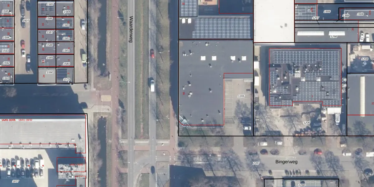 Het perceel waarop Waarderweg 56 staat heeft een oppervlakte van 2075 m². Dit is een zeer groot perceel. De perceeloppervlakte wordt geregistreerd door het Kadaster. Gedetailleerde informatie over de maten van dit perceel kunt u vinden in het rapport Kadastrale kaart met maatvoering van Waarderweg 56.