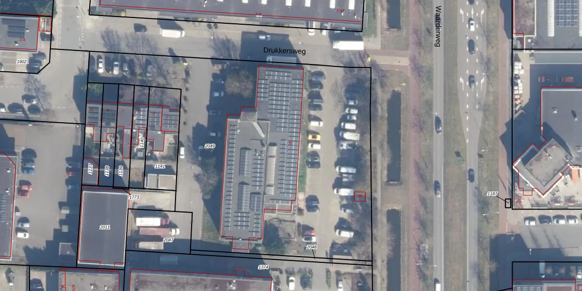 Het perceel waarop Waarderweg 78 staat heeft een oppervlakte van 4655 m². Dit is een zeer groot perceel. De perceeloppervlakte wordt geregistreerd door het Kadaster. Gedetailleerde informatie over de maten van dit perceel kunt u vinden in het rapport Kadastrale kaart met maatvoering van Waarderweg 78.