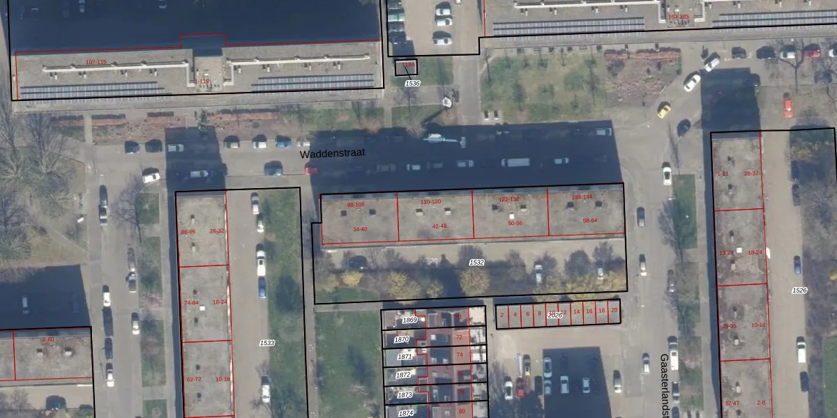 Het perceel waarop Waddenstraat 112 staat heeft een oppervlakte van 1941 m². Dit is een zeer groot perceel. De perceeloppervlakte wordt geregistreerd door het Kadaster. Gedetailleerde informatie over de maten van dit perceel kunt u vinden in het rapport Kadastrale kaart met maatvoering van Waddenstraat 112.