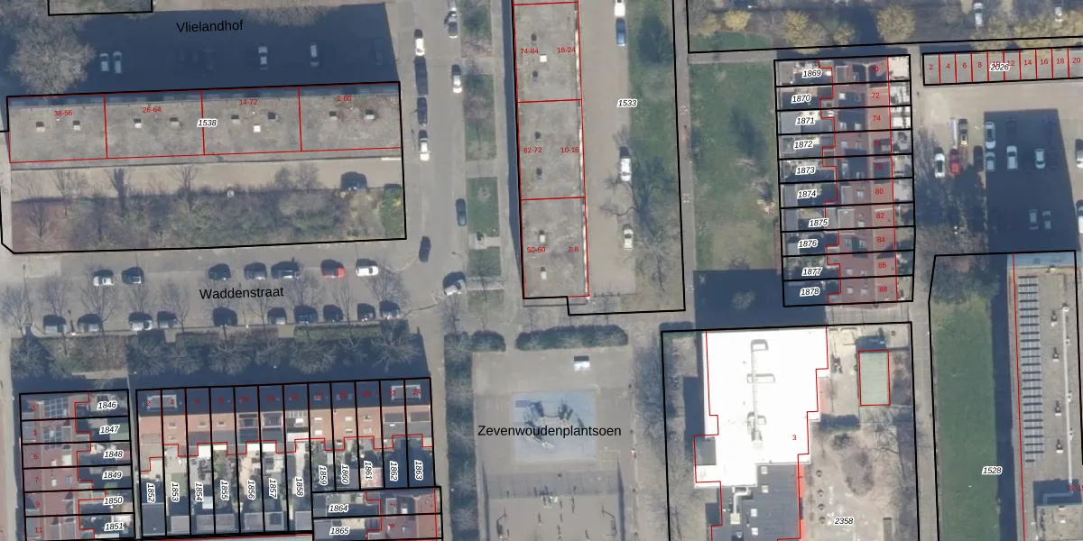 Het perceel waarop Waddenstraat 50 staat heeft een oppervlakte van 2206 m². Dit is een zeer groot perceel. De perceeloppervlakte wordt geregistreerd door het Kadaster. Gedetailleerde informatie over de maten van dit perceel kunt u vinden in het rapport Kadastrale kaart met maatvoering van Waddenstraat 50.