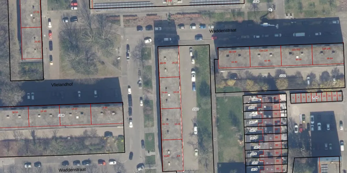 Het perceel waarop Waddenstraat 84 staat heeft een oppervlakte van 2206 m². Dit is een zeer groot perceel. De perceeloppervlakte wordt geregistreerd door het Kadaster. Gedetailleerde informatie over de maten van dit perceel kunt u vinden in het rapport Kadastrale kaart met maatvoering van Waddenstraat 84.