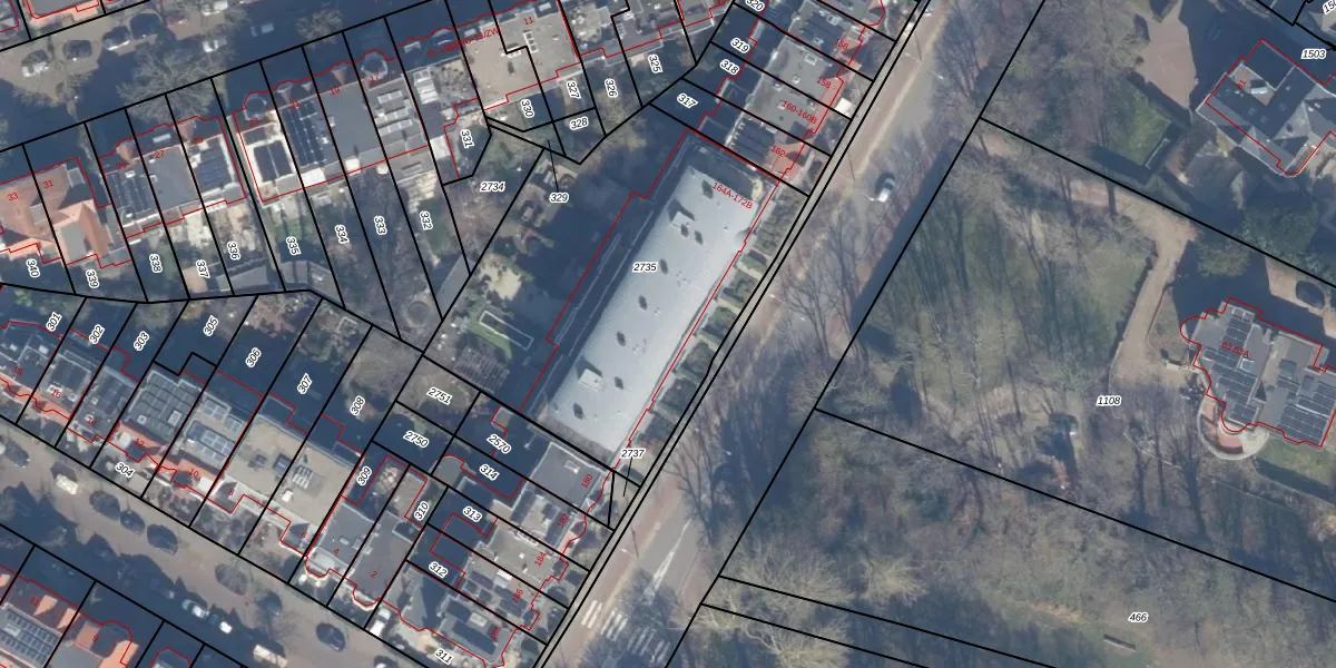 Het adres ligt op het perceel HLM02-S-2735, dat zich in de kadastrale gemeente Haarlem bevindt. De oppervlakte van het perceel is 1785 m². Dat is groter dan gemiddeld in Haarlem, waar de gemiddelde perceeloppervlakte op 1125,79 m² ligt. Het grootste perceel in de kadastrale gemeente is 46,4 ha. Het kleinste perceel heeft een oppervlakte van 0 m². Op het perceel zijn 20 adressen aanwezig. De laatste wijziging in het de Basisregistratie Kadaster (BRK) was op 09-06-2005.