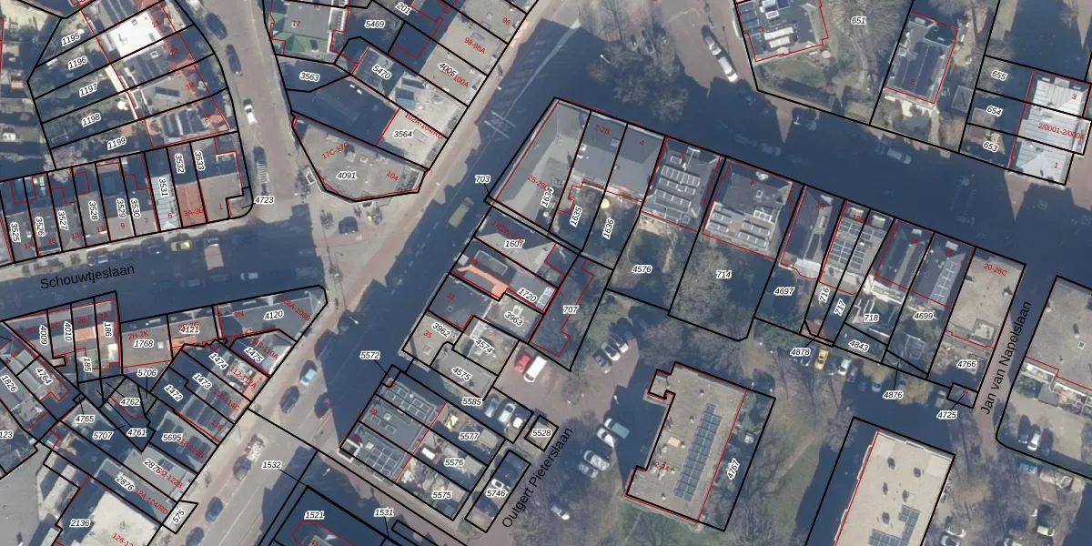Het adres ligt op het perceel HLM01-I-1607, dat zich in de kadastrale gemeente Haarlem bevindt. Het perceel is 138 m² groot. Dat is kleiner dan de gemiddelde perceeloppervlakte in Haarlem, dat op 328,37 m² ligt. De grootste perceeloppervlakte in de kadastrale gemeente is 13,9 ha. De kleinste oppervlakte bedraagt 0 m². Op het perceel liggen in totaal 6 adressen. De huidige grenzen van het perceel zijn digitaal in de Basisregistratie Kadaster (BRK) geregistreerd op 27-08-2001.
