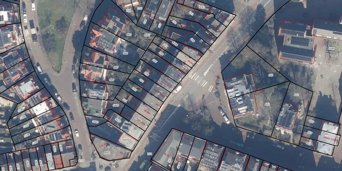 Het perceel waarop het adres ligt is HLM01-I-204. De afkorting 'HLM01' staat voor kadastrale gemeente Haarlem. Het perceel is 172 m² groot. Dat is kleiner dan de gemiddelde perceeloppervlakte in Haarlem, dat op 328,37 m² ligt. Het kleinste perceel in de kadastrale gemeente is 0 m² groot. De grootste perceeloppervlakte is 13,9 ha. Op het perceel zijn 2 adressen aanwezig. De laatste wijziging in het de Basisregistratie Kadaster (BRK) was op 30-10-2001.